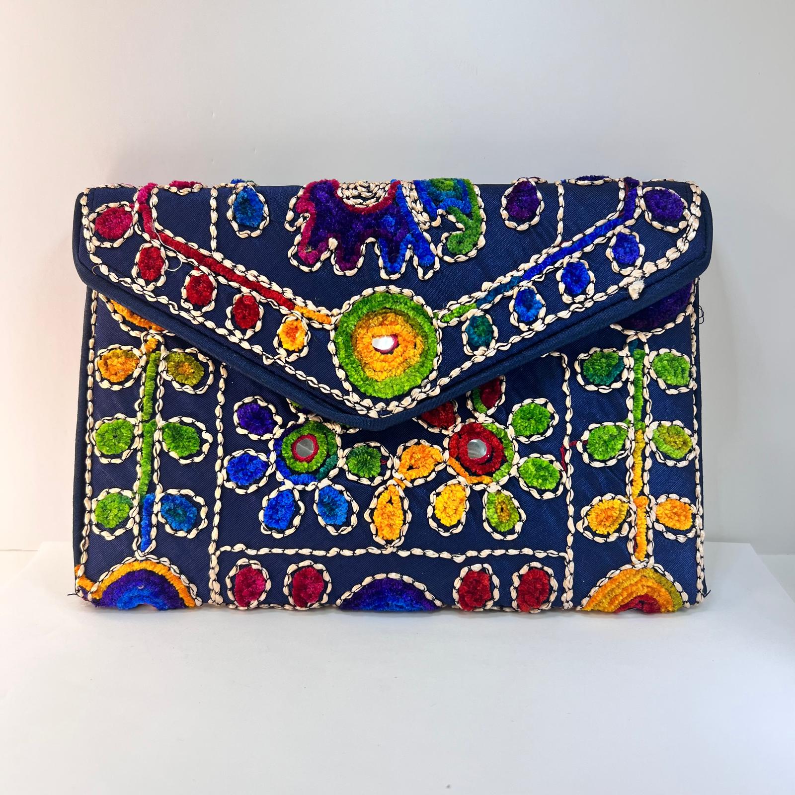 Ese bolso cartera / bandolera con fondo azul y bordados de colores es un símbolo espiritual de tu camino. El bolso representa el recipiente de lo esencial; el azul, calma y conexión con lo infinito; los colores, la abundancia y la creatividad que te rodean. El elefante en la solapa es guardián y protector, portador de sabiduría y fuerza, que aparta obstáculos y abre caminos. En conjunto, es un talismán que te recuerda que caminas protegido, guiado y bendecido.