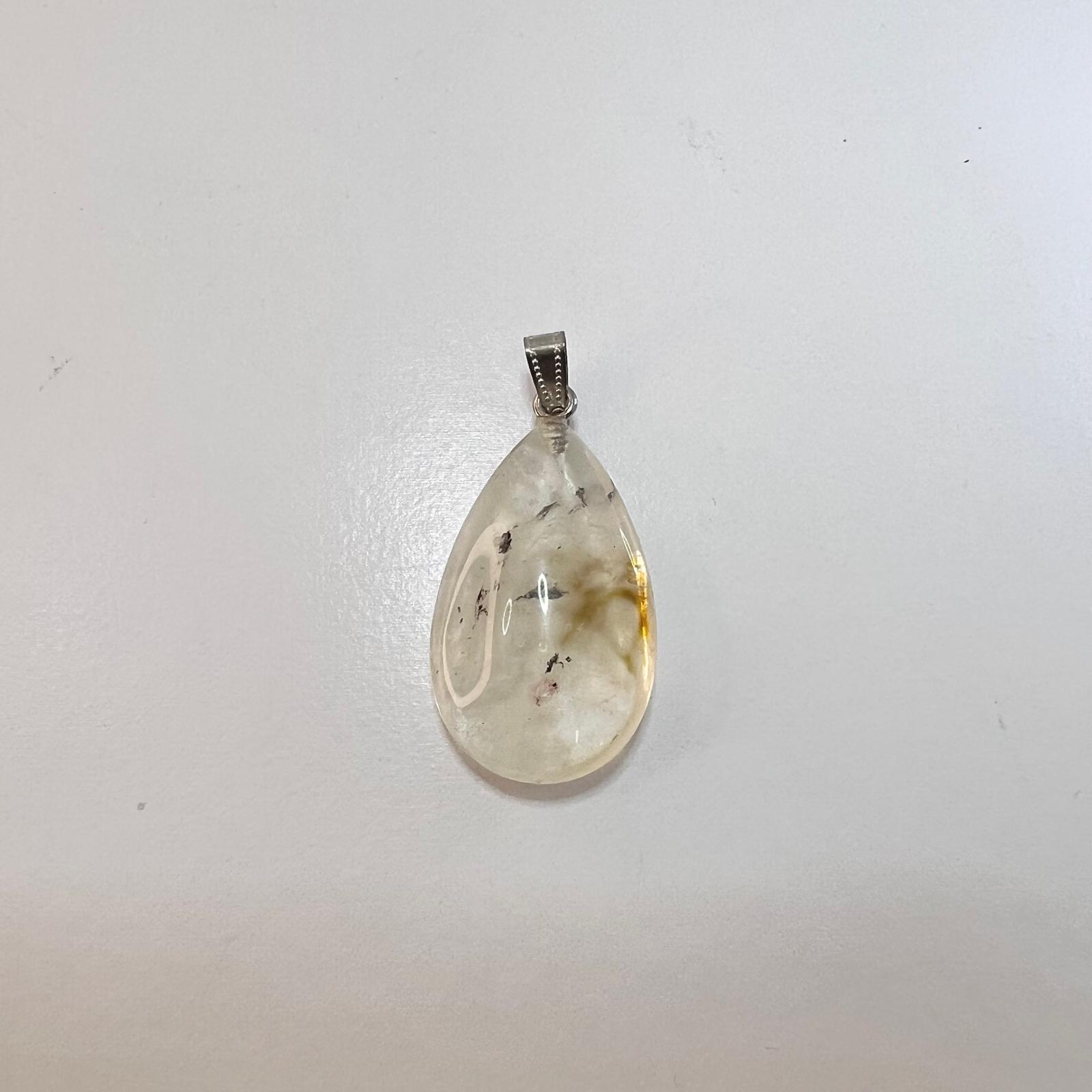 El colgante en forma de gota de cuarzo turmalinado simboliza protección, purificación y equilibrio energético. El cuarzo turmalinado combina la claridad y amplificación del cuarzo con la capacidad de la turmalina negra de absorber energías negativas, favoreciendo la protección y el bienestar. Su forma de gota potencia la concentración de energía y actúa como un amuleto de fortaleza, equilibrio y conexión espiritual.