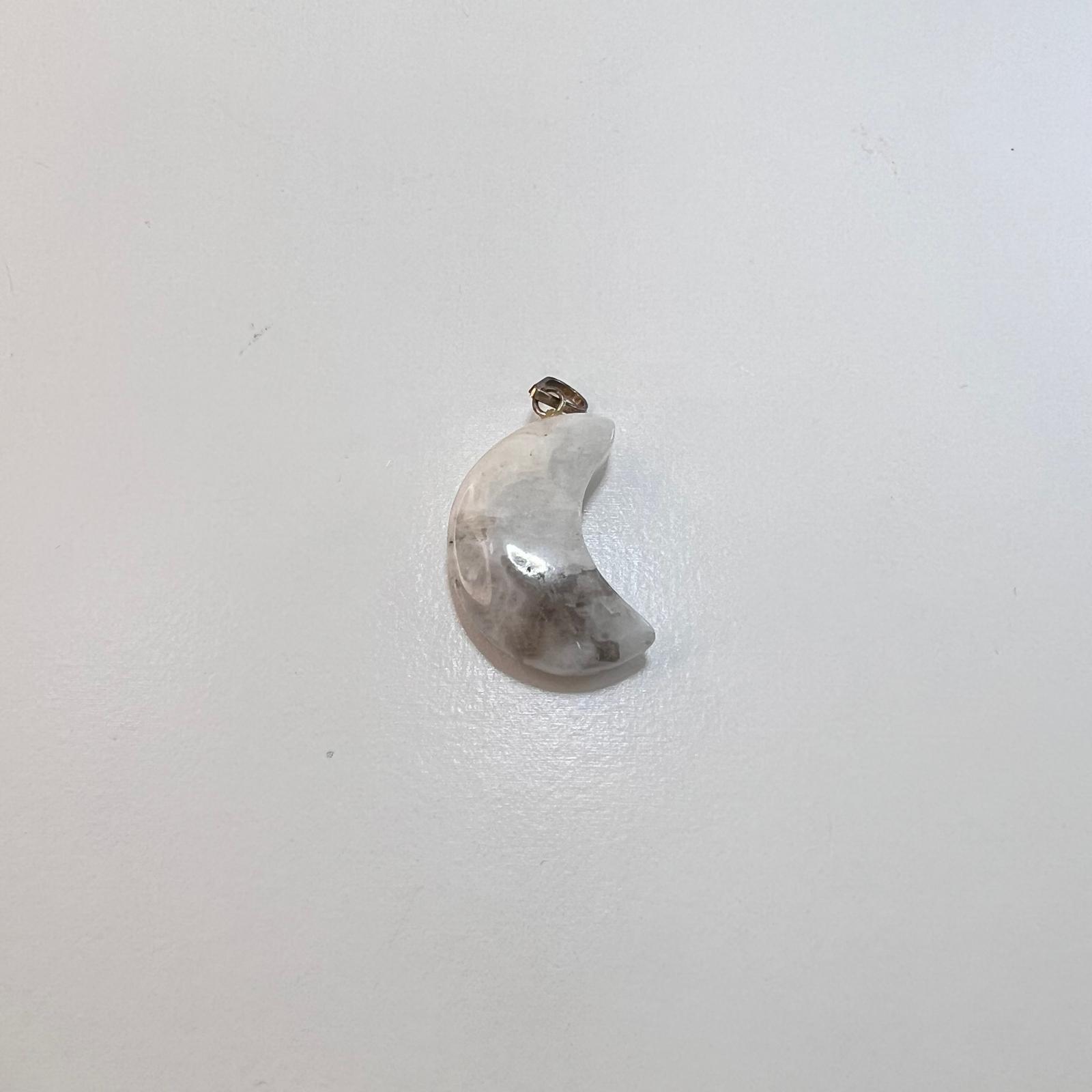 El colgante de piedra luna en forma de luna simboliza intuición, sensibilidad y conexión espiritual. La piedra luna potencia la calma, la percepción interior y la energía femenina, mientras que la forma de luna refuerza la receptividad y la armonía con los ciclos naturales. Es un amuleto que promueve equilibrio emocional, crecimiento personal y protección espiritual.