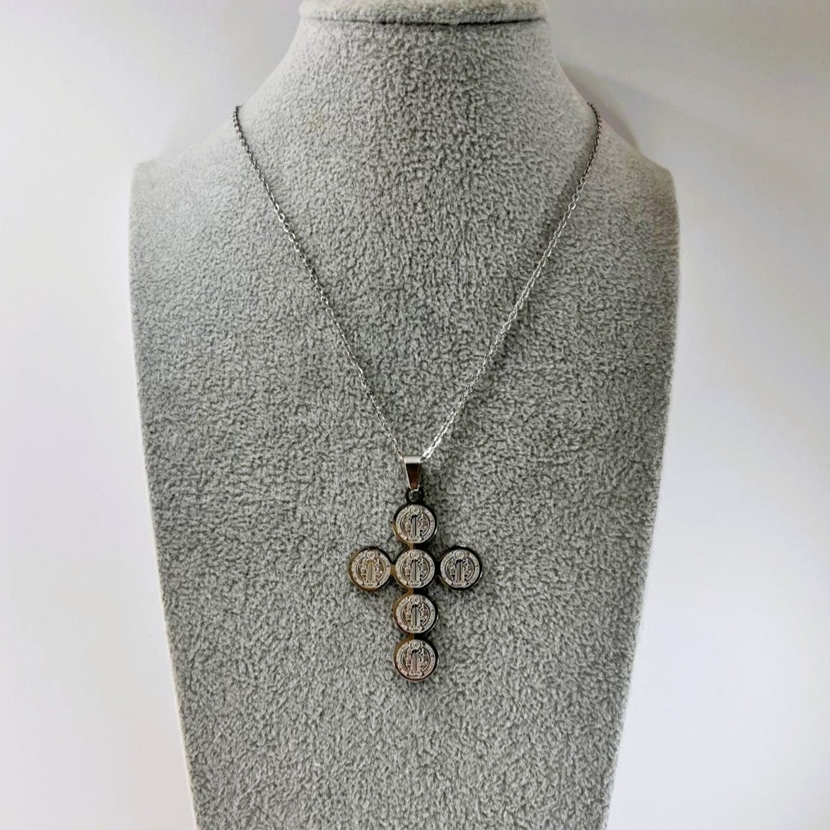 Collar - Acero Cruz Medallitas de San Benito