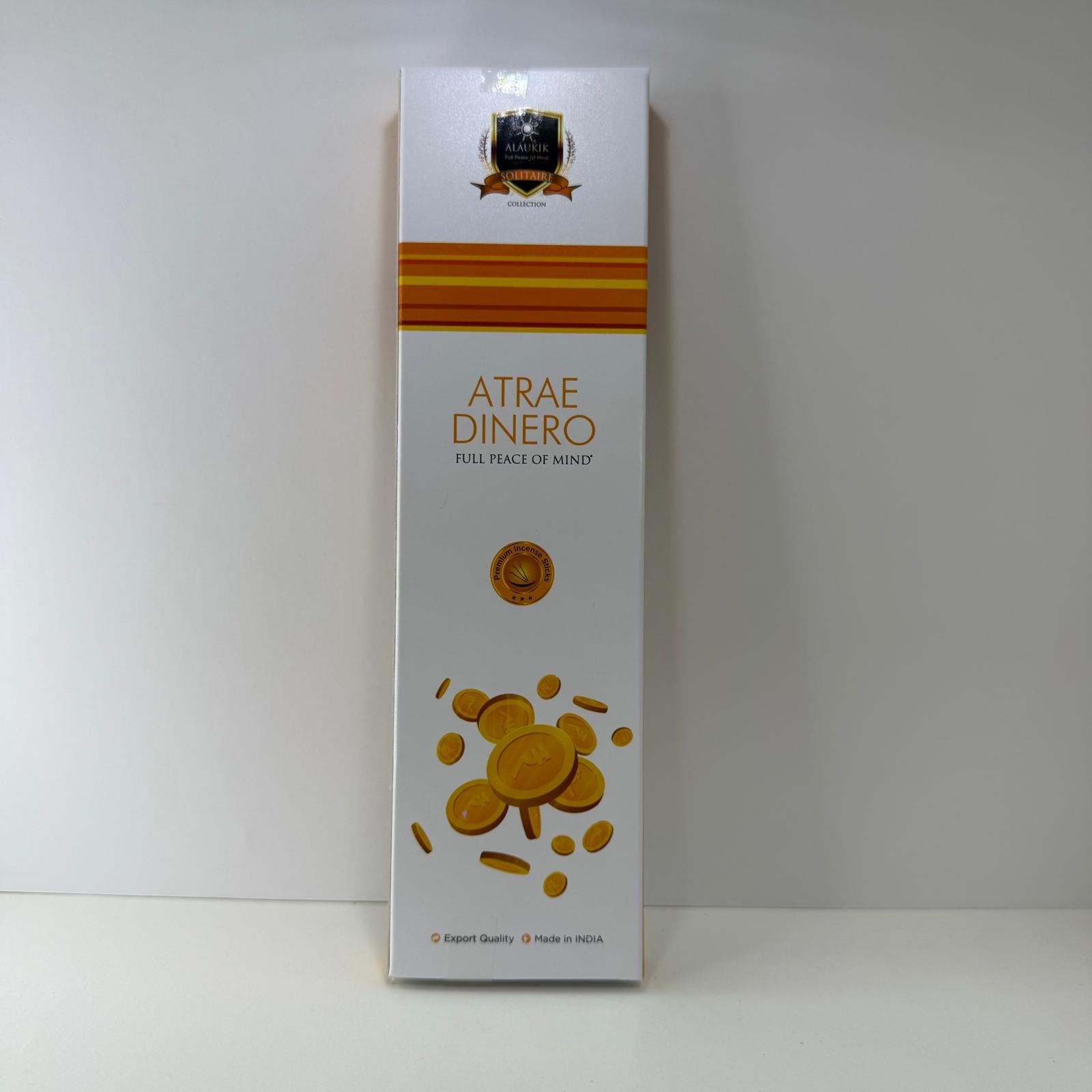 Alauki Atrae Dinero (varillas): Diseñado para atraer prosperidad, este incienso combina notas dulces y amaderadas que generan sensación de abundancia y optimismo. Al encenderlo, el aroma envuelve el espacio, estimulando la claridad mental y la energía positiva. Espiritualmente, se utiliza en rituales de prosperidad y concentración en metas financieras o personales. Los usuarios destacan su efecto motivador y su capacidad de transformar la energía del hogar de manera positiva.