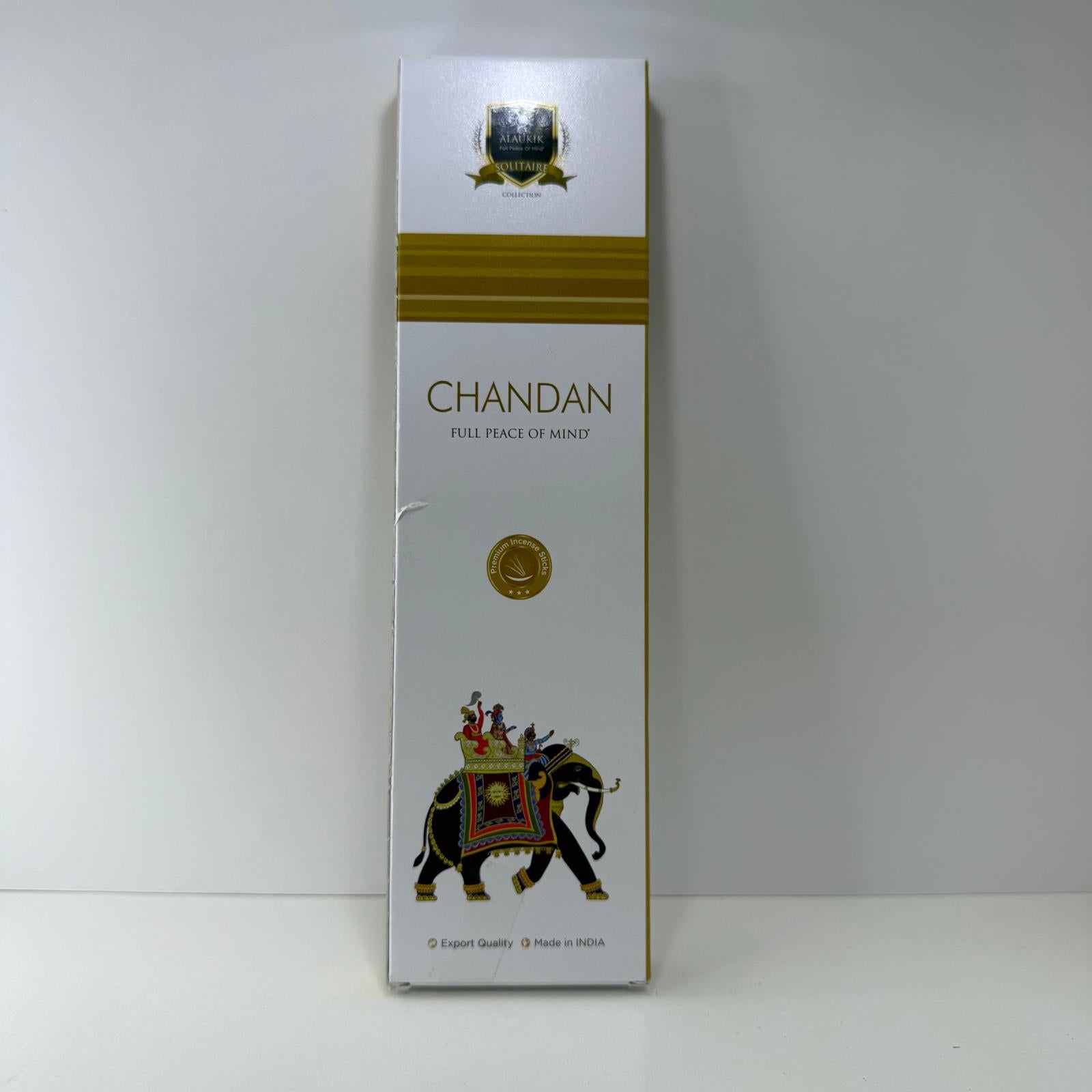 Alauki Chandan (varillas): Este incienso ofrece un aroma suave, amaderado y aromático característico del sándalo indio. Al encenderlo, se percibe un efecto calmante y meditativo, que ayuda a purificar el ambiente y equilibrar las emociones. Su combustión prolongada permite disfrutar de la fragancia durante varios minutos. Espiritualmente, se utiliza para meditación, relajación y protección del hogar. Los usuarios destacan su aroma tradicional y su capacidad de generar serenidad.