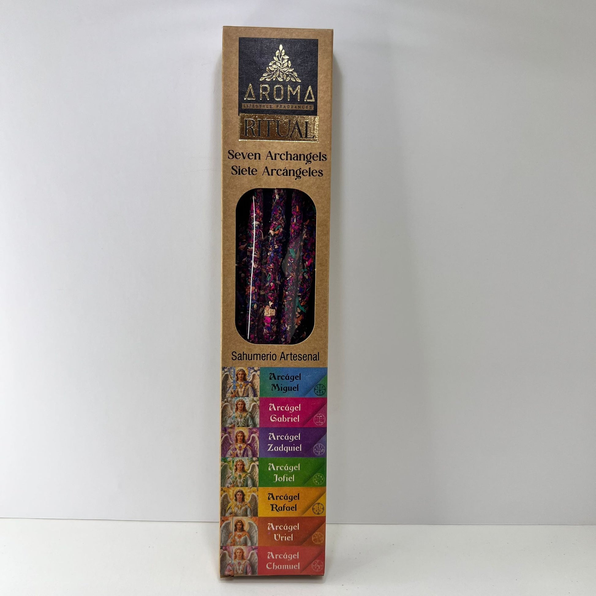 El incienso Aroma Ritual 7 Arcángeles ofrece una combinación aromática que inspira protección, guía y armonía espiritual. Sus notas equilibradas y envolventes crean un ambiente de calma y conexión con la energía de los arcángeles, ideal para meditación y prácticas espirituales. Cada varilla mide entre 20 y 25 centímetros, con duración aproximada de 30 minutos, en cajas de 15 gramos.