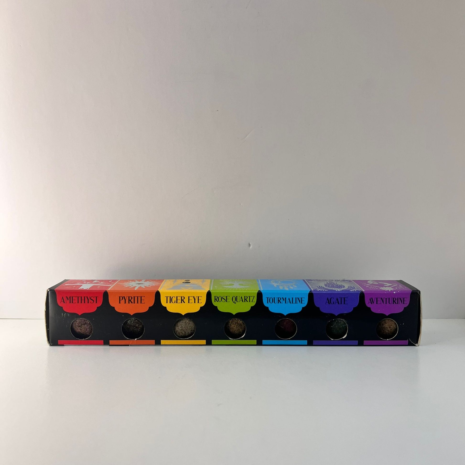 Bombas de defumación 7 chakras de Crystal Scents, diseñadas para equilibrar y armonizar los centros energéticos del cuerpo. Elaboradas con hierbas, resinas y aceites esenciales naturales, liberan aromas que facilitan la meditación, la relajación y la purificación del espacio. Ideales para rituales de limpieza energética y prácticas espirituales, transformando el ambiente en un espacio armonioso y lleno de energía positiva.