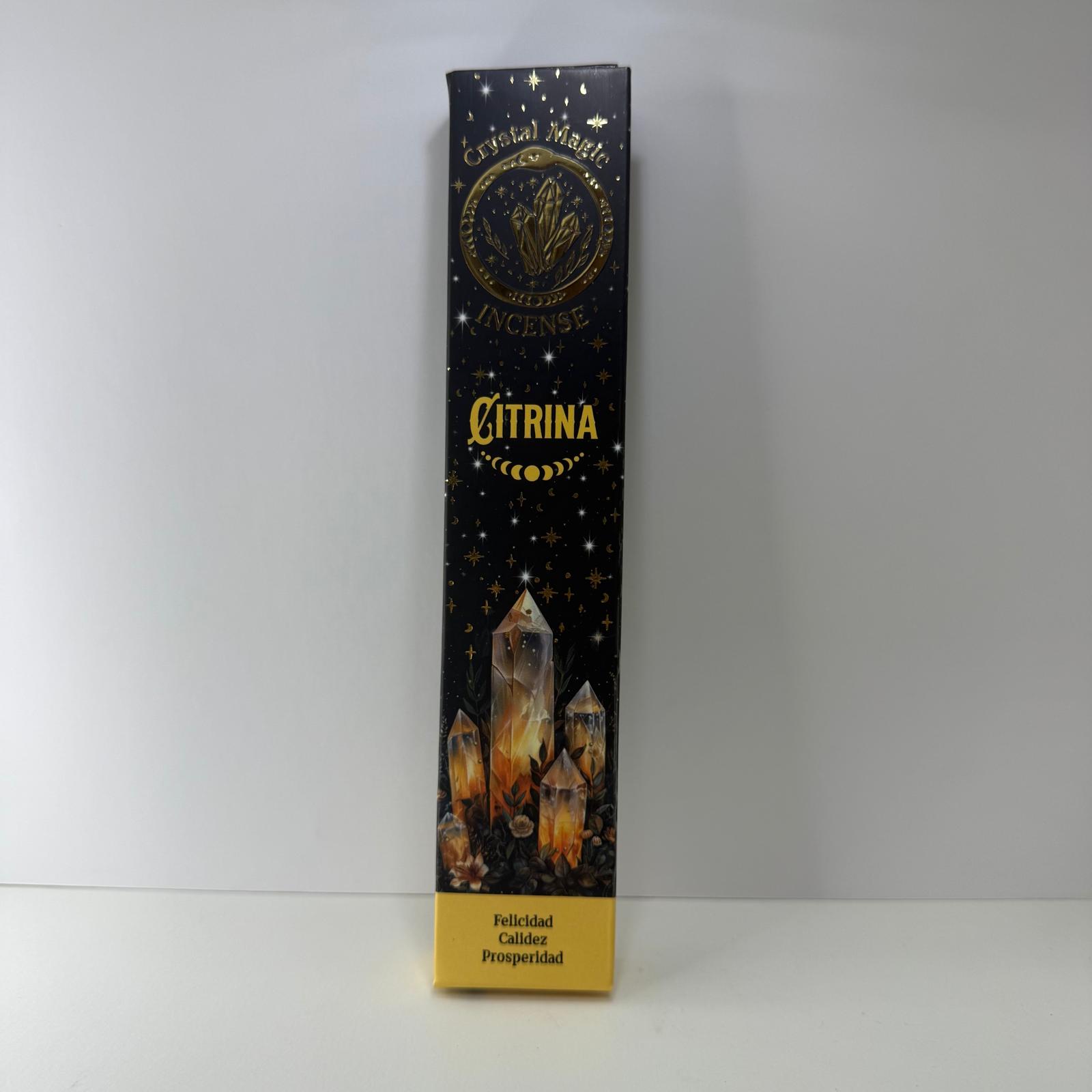 La fragancia de Crystal Magic Citrina es dulce y ligeramente cítrica, ideal para revitalizar espacios y estimular alegría y abundancia. Inspirado en el citrino, este incienso ayuda a purificar el ambiente y fomentar energía positiva. Cada varilla mide entre 20 y 25 centímetros, con duración aproximada de 30 minutos, en cajas de 15 gramos.
