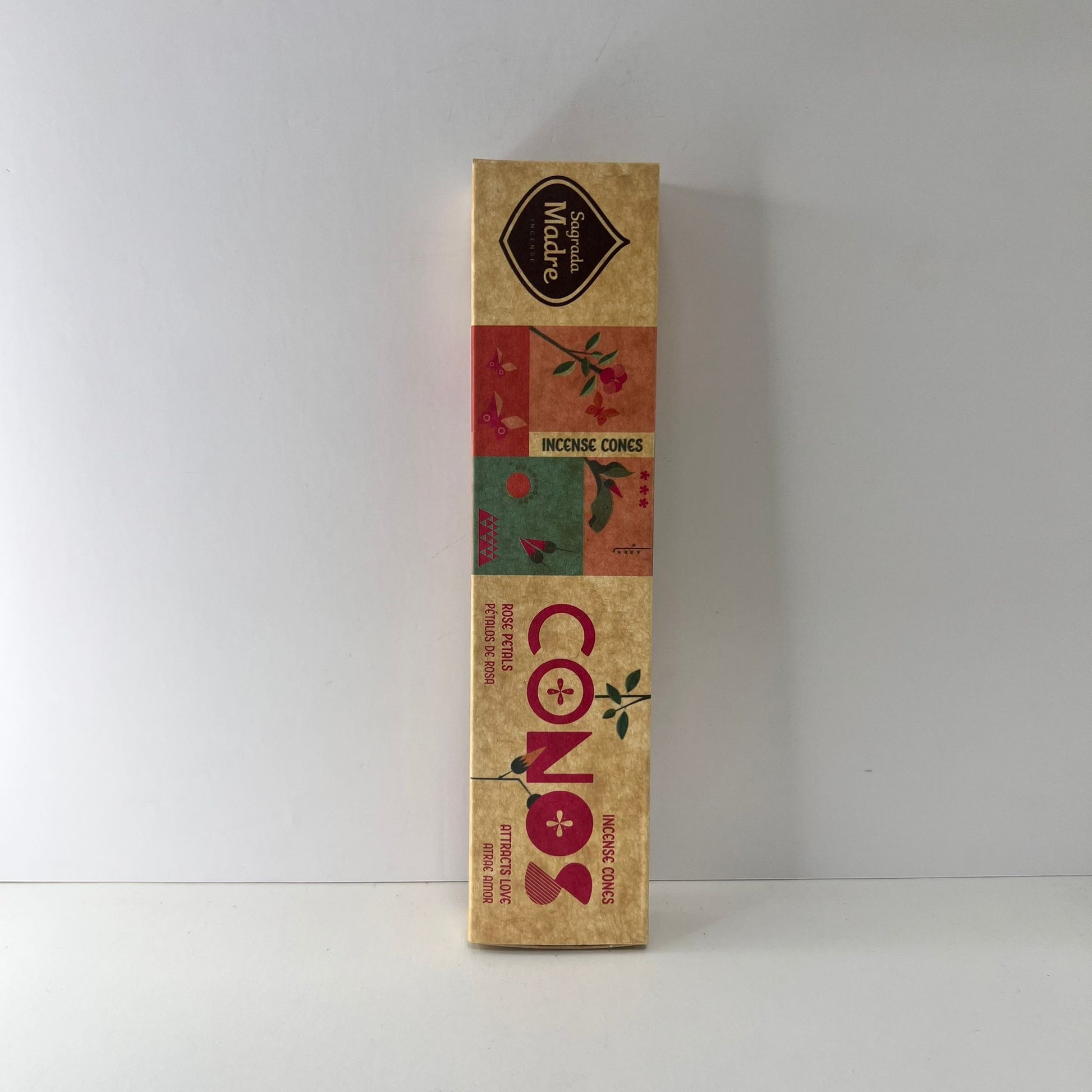Los conos de incienso "Pétalos de Rosa" de la marca Sagrada Madre son elaborados artesanalmente con una mezcla de ingredientes naturales, incluyendo pétalos de rosa, aceite concentrado de rosa, biomasa de frutas, cedro, aglutinante natural y sal. Estos conos están diseñados para facilitar rituales de limpieza energética, protección, conexión espiritual y renovación vibracional.