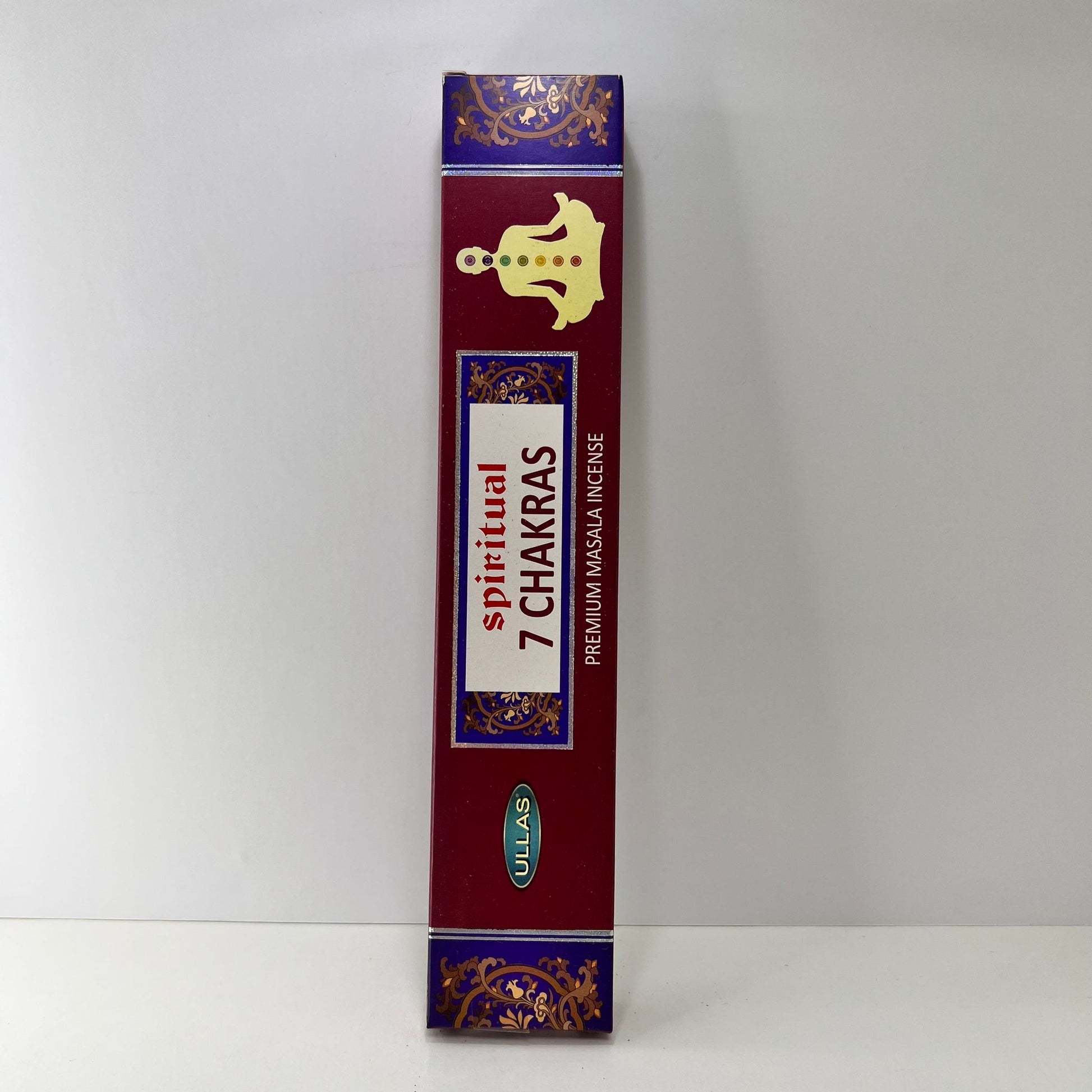 El incienso ullas 7 Chakras combina fragancias equilibradas que representan la energía de cada centro vital del cuerpo. Su aroma variado y armónico busca restablecer la energía, promover equilibrio interior y favorecer la meditación enfocada en la sanación y la espiritualidad. Cada varilla mide entre 20 y 25 centímetros, con una duración aproximada de 30 minutos, en cajas de 15 gramos con 8 a 12 varillas.