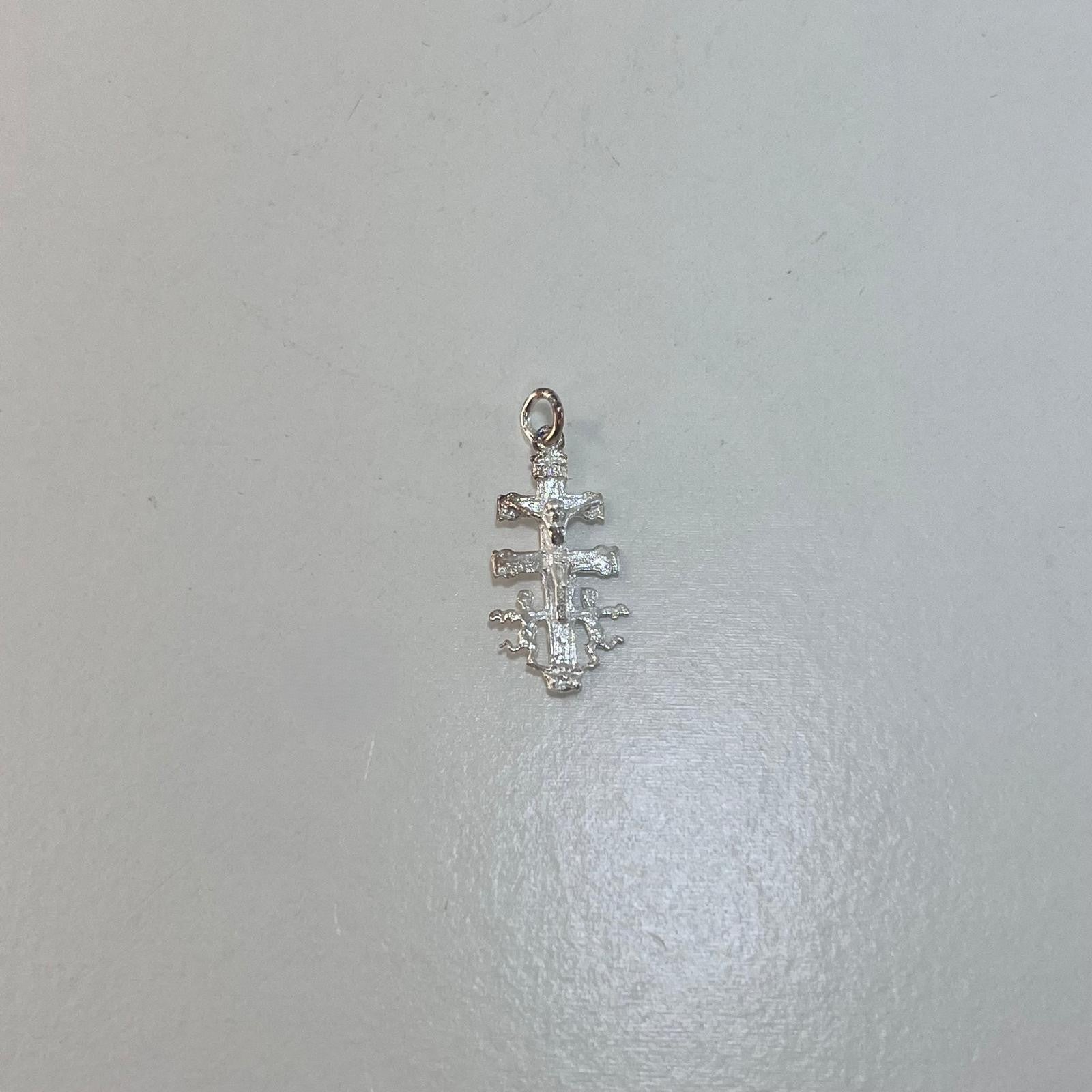 Símbolo sagrado de protección y fe. La Cruz de Caravaca en plata actúa como escudo espiritual, aleja energías negativas y fortalece la conexión con lo divino. Este colgante es un talismán de luz y guía, que protege al portador y aporta equilibrio, fe y serenidad en cada paso.