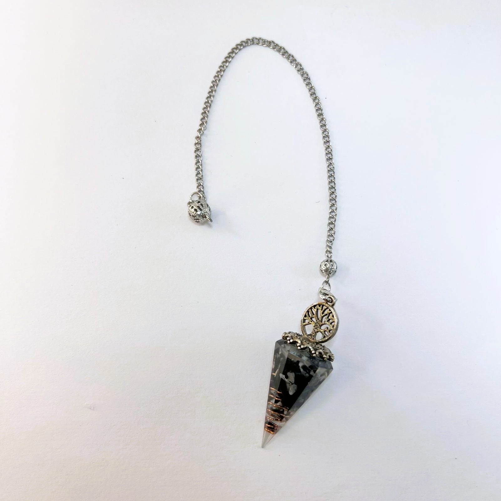 El péndulo punta de orgonita con ónix y enganche de árbol de la vida es un ancla de protección y estabilidad que conecta la fuerza de la tierra con la conciencia superior su cristal absorbe y transforma energías densas mientras el árbol de la vida sostiene la conexión con la sabiduría universal sin necesidad de palabras ni rituales cada movimiento irradia fuerza interior equilibrio y claridad espiritual fortaleciendo la intuición y la seguridad del ser profundo