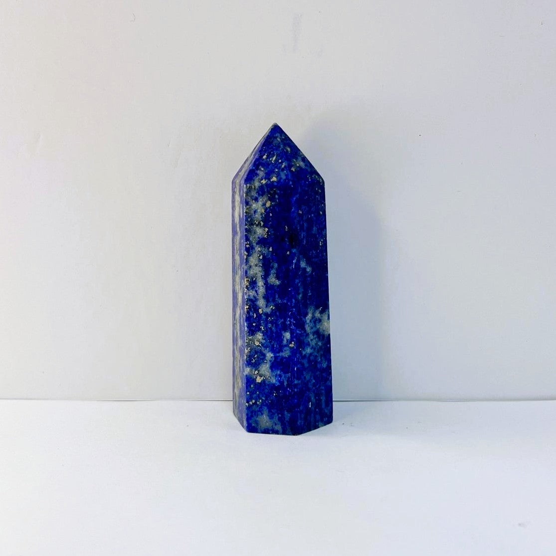 La punta de lapislázuli de 8 cm porta la sabiduría de los cielos estrellados. Es piedra de visión y verdad, que despierta la mente superior y conecta con la voz interior que nunca miente. Su energía invita a hablar con autenticidad y a mirar más allá de la superficie de las cosas.