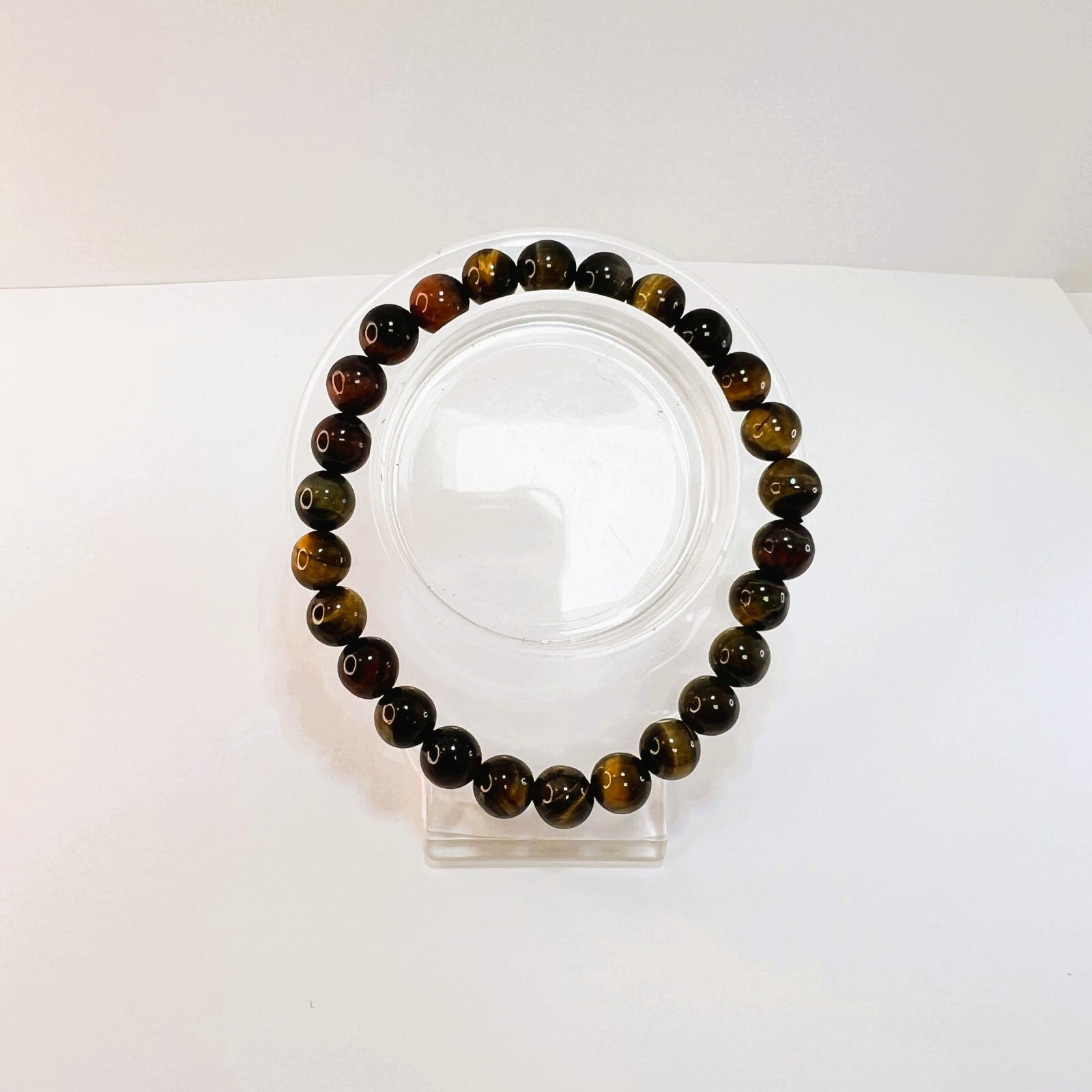 Una pulsera de hombre con bolitas de ojo de tigre, ojo de halcón y ojo de buey es un amuleto de fuerza, claridad y protección.