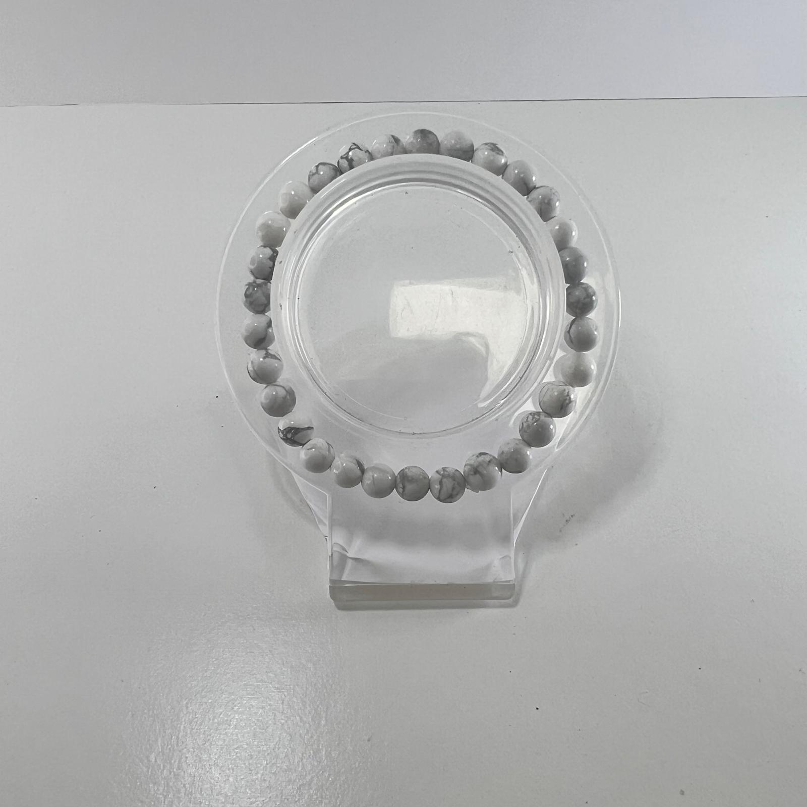 Una pulsera de howlite es un susurro de calma y claridad: su blanco sereno con vetas grisáceas invita a la paz mental, la paciencia y la introspección. Es un amuleto que disuelve tensiones, equilibra emociones y abre el corazón a la serenidad interior