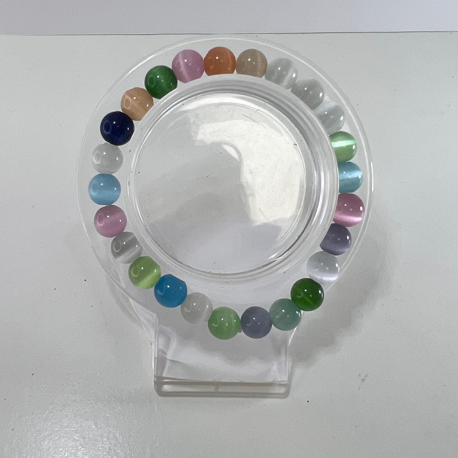 Una pulsera de ojo de gato multicolor es un puente de luz en movimiento: cada tono despierta una vibración distinta, como un arcoíris que danza en la piel. Sus destellos protegen, inspiran y equilibran, recordando que la vida es un caleidoscopio de energías y posibilidades infinitas