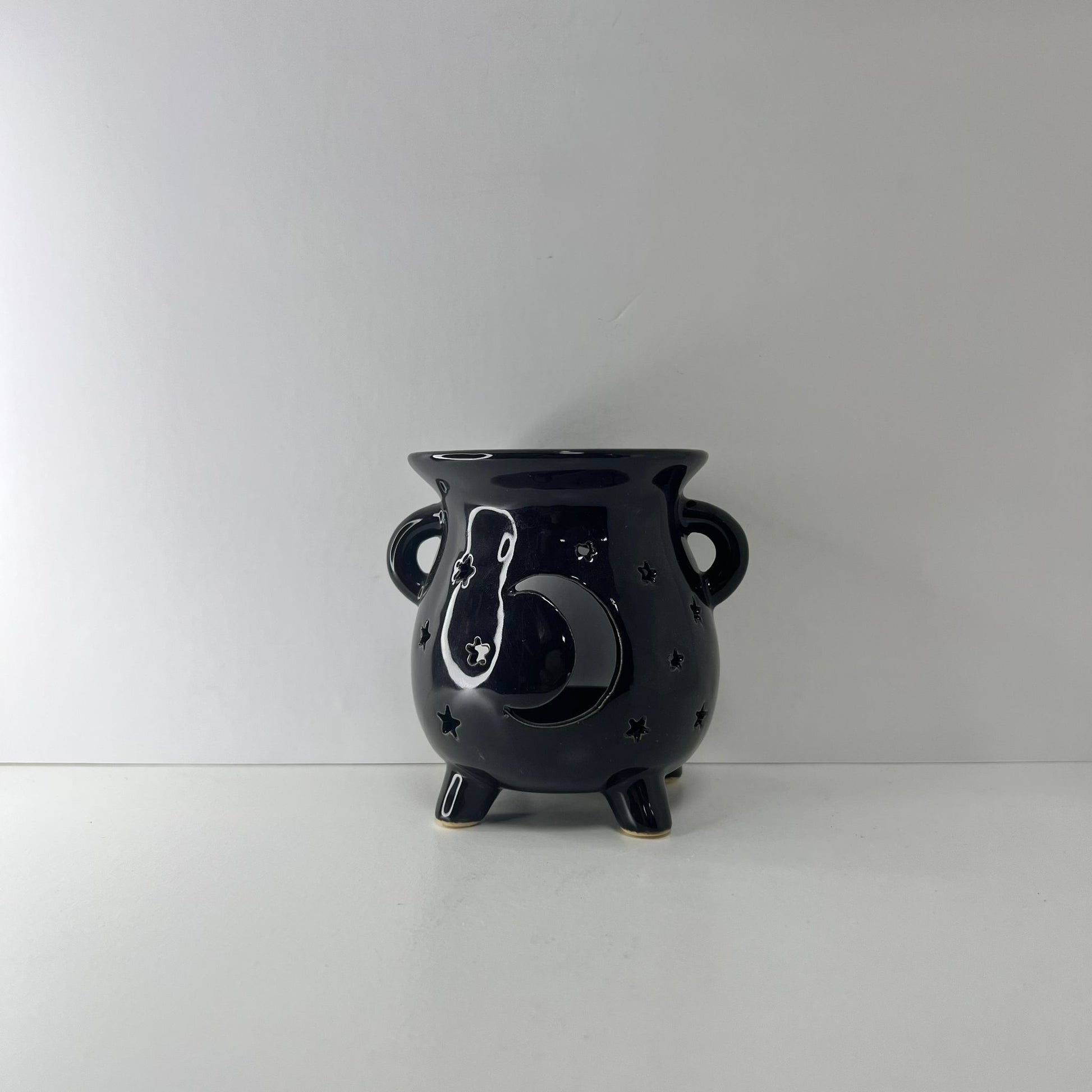 Diseñado para calentar aceites esenciales o incienso en polvo, liberando su aroma mientras simboliza intuición, magia y conexión con los ciclos del universo. Ideal para rituales, meditación o purificación, combina la energía del fuego con los símbolos celestiales, creando un ambiente místico y protector.