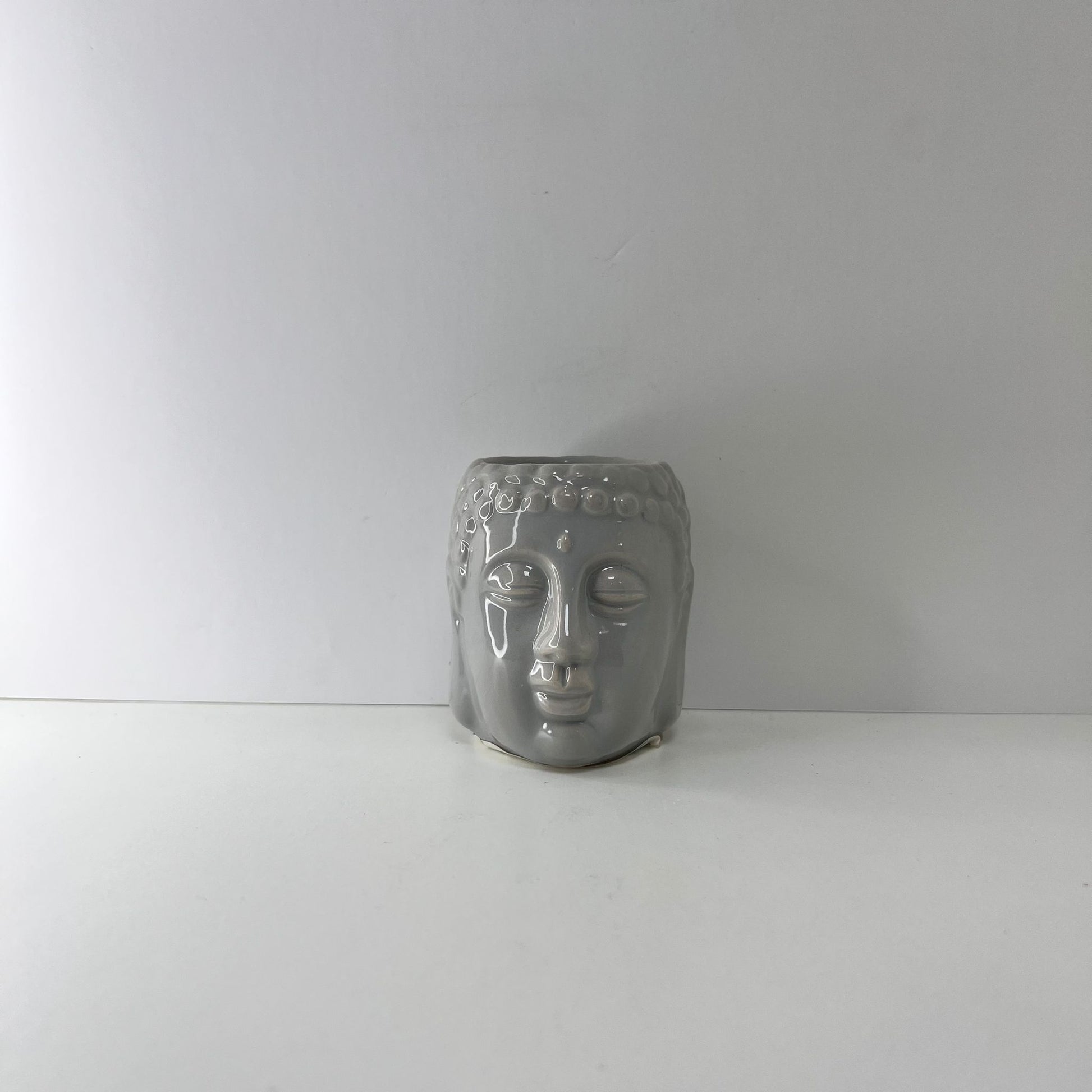 Una pequeña cabeza de Buda tallada con serenidad que guarda en su interior una pequeña vela cuya luz se enciende desde su corazón mientras en la coronilla se deposita el aceite o esencia que, al calentarse, libera su aroma en delicadas ondas ascendentes el humo y la fragancia envuelven el rostro sereno como un halo de meditación este quemador no es solo un objeto es un puente entre luz y aroma entre cuerpo y espíritu cada chispa y cada gota que asciende recuerdan la calma interior y transforman el espacio en un santuario silencioso de armonía y claridad