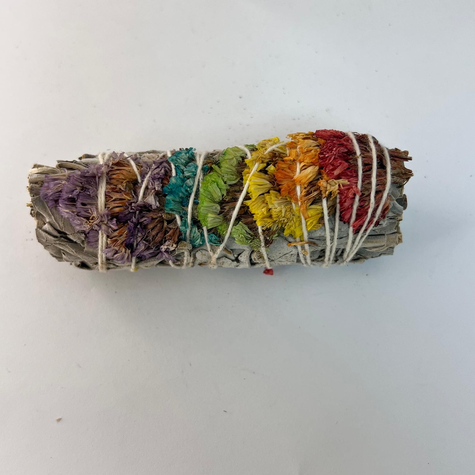 Sahumerio - Atadito Salvia Blanca con Pétalos Rainbow