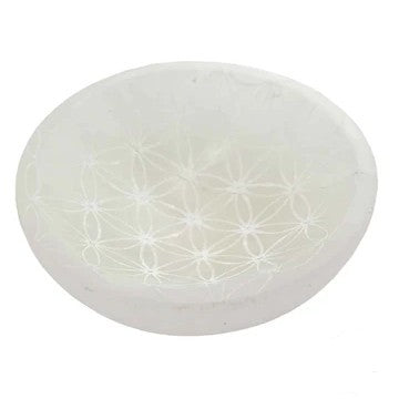 Selenita - Cuenco Grabado Flor De La Vida 10 Cms