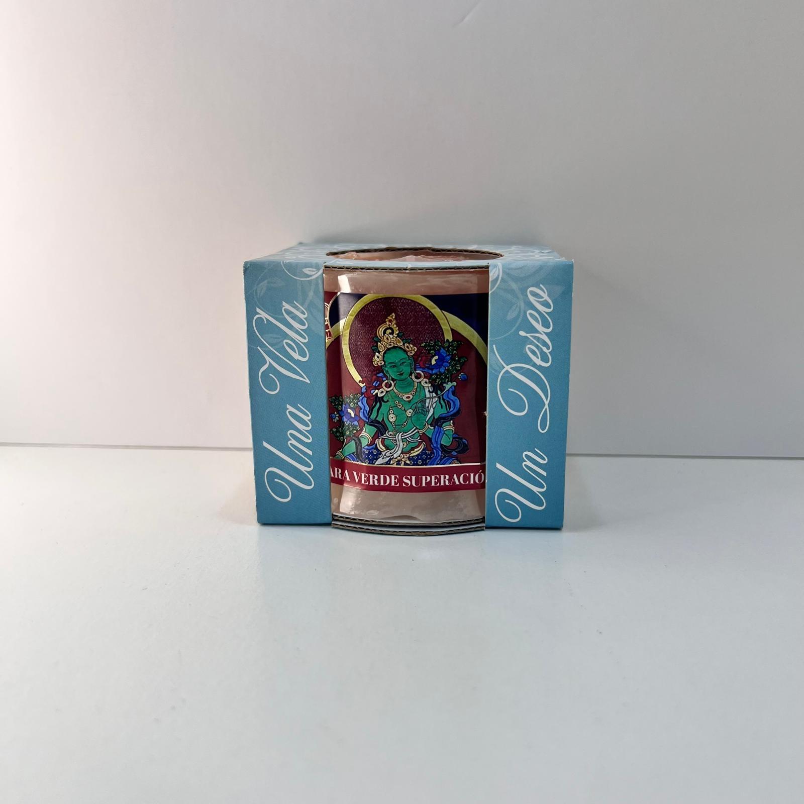 La vela Tara Verde Superación irradia energía de renovación y fortaleza espiritual. Al encenderla, su luz y aroma abren caminos de crecimiento, liberan bloqueos y fomentan la superación personal, conectando con la protección y guía de la Tara Verde.