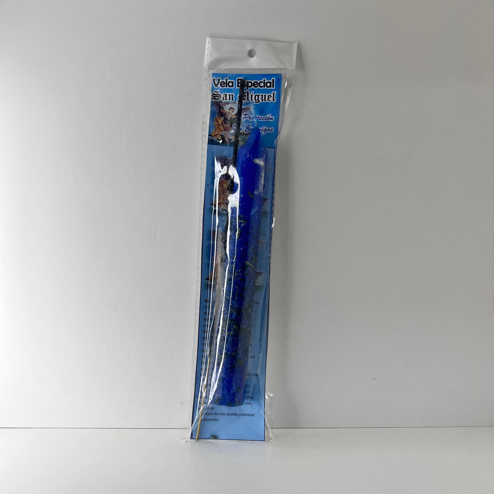 Suele presentarse en colores como el azul y el rojo, que simbolizan la fuerza, la fe y el poder de la espada del Arcángel. Al encenderla, se recomienda elevar una oración o petición a San Miguel, pidiéndole su amparo, su guía y su intervención en los momentos de dificultad. La llama de esta vela actúa como un canal de conexión espiritual, generando un escudo de luz que fortalece el espíritu, limpia el entorno y llena de seguridad y confianza al devoto.