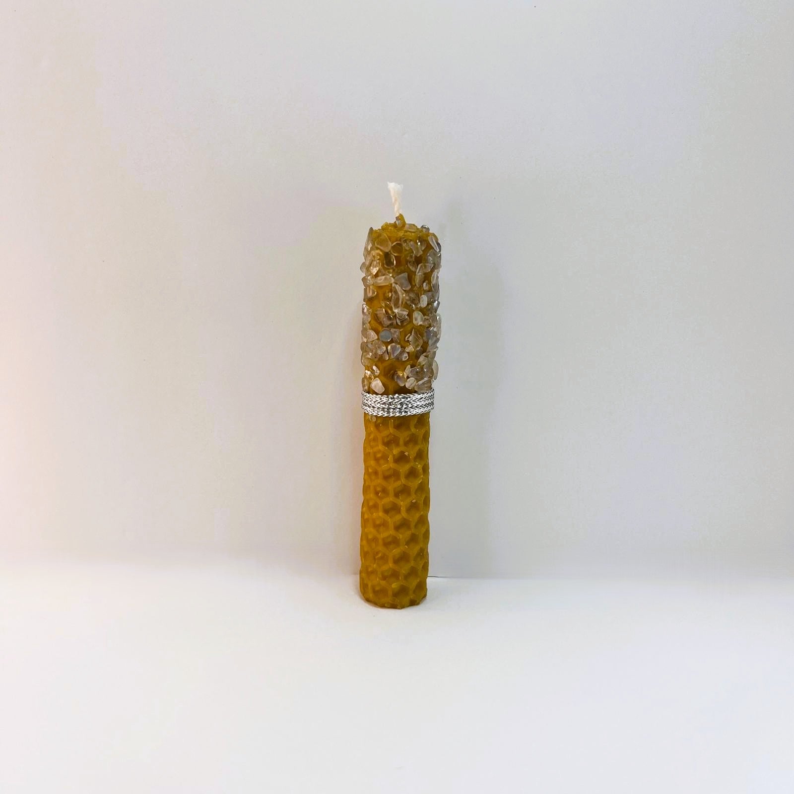 Vela - Vela Miel con Labradorita y Cuarzo Blanco